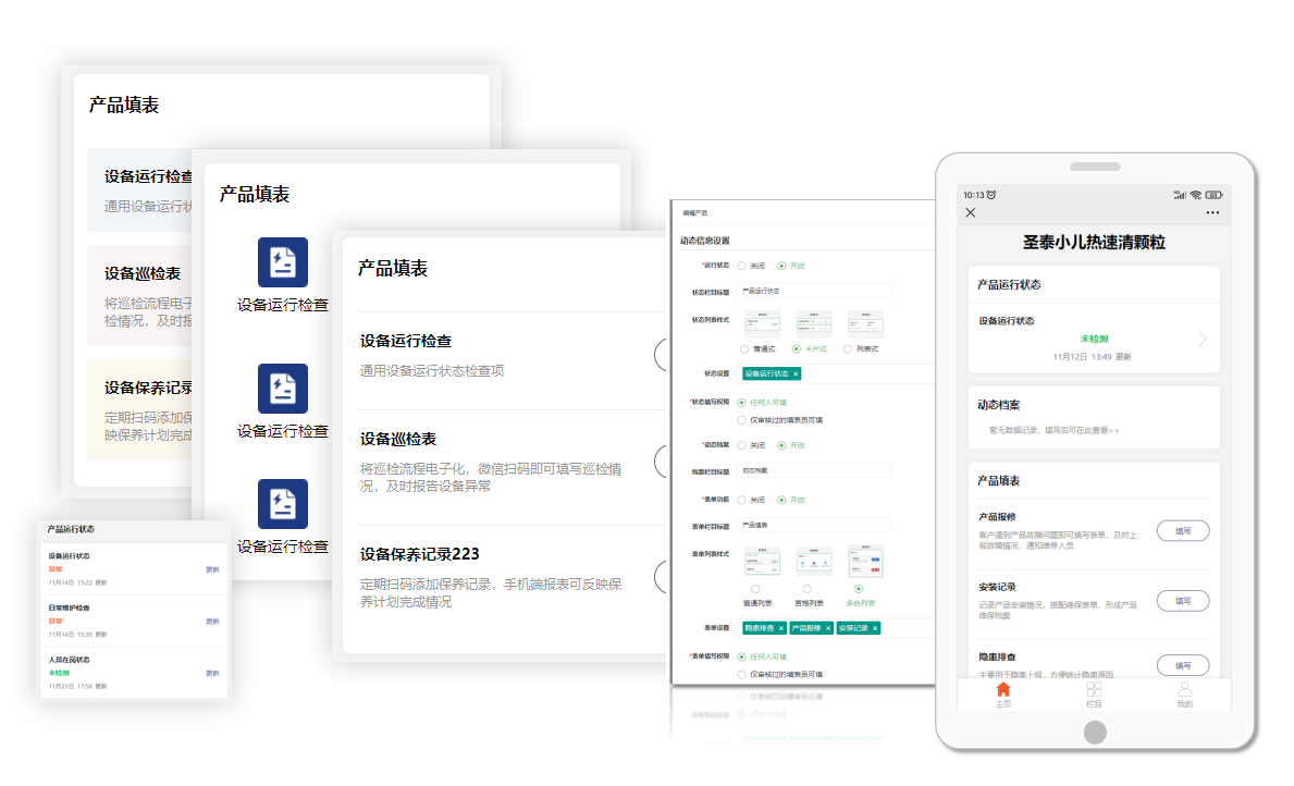 支持自由开启或关闭运行状态,设置状态显示,样式设置状态表单等,支持自由开启或关闭 填表功能,设置表单显示,样式及要显示的表单,支持权限管理设置